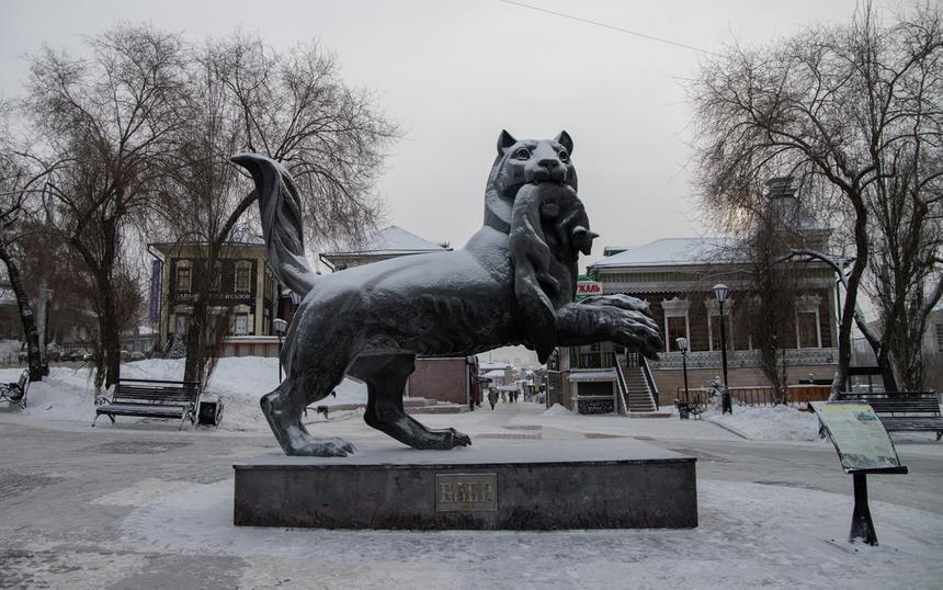 Среди интересных памятников Иркутска — скульптура символа города бабра (старорусское обозначение пантеры, тигра, леопарда), памятник Леониду Гайдаю, Александру Вампилову, первой учительнице, туристу и иркутской кошке. Наиболее примечательными музеями для гостей города принято считать Дом-музей декабристов, где жили отправленные в ссылку дворяне, а также ледокол «Ангара» — один из старейших в мире ледоколов, который впервые спустили на воду Байкала в 1900 году. Сейчас он стоит в Иркутске на «вечной стоянке».