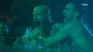 В заставках третьего сезона вода оказывается густонаселенной субстанцией. В лесных сценах из прудов растут лотосы и обязательно высовываются слишком уж осознанно выглядящие рыбы. Титр Сэма Ниволы (Локлен) представляет лежащего в воде юношу, который то ли отдыхает, то ли утонул. Пока непонятно, дает ли это отгадку, чье тело было показано в первом эпизоде. В любом случае вода в третьем сезоне «Белого лотоса» — опасная стихия: в финальных сценах заставки потерпевших крушение моряков безжалостно поглощают огромные рыбы.