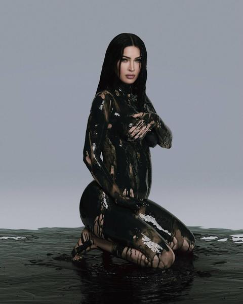 Актриса опубликовала фото, на котором она сидит голая, покрытая лишь черной жидкостью, и придерживает живот. На другом снимке будущая мама четверых детей держит перед камерой положительный тест на беременность.