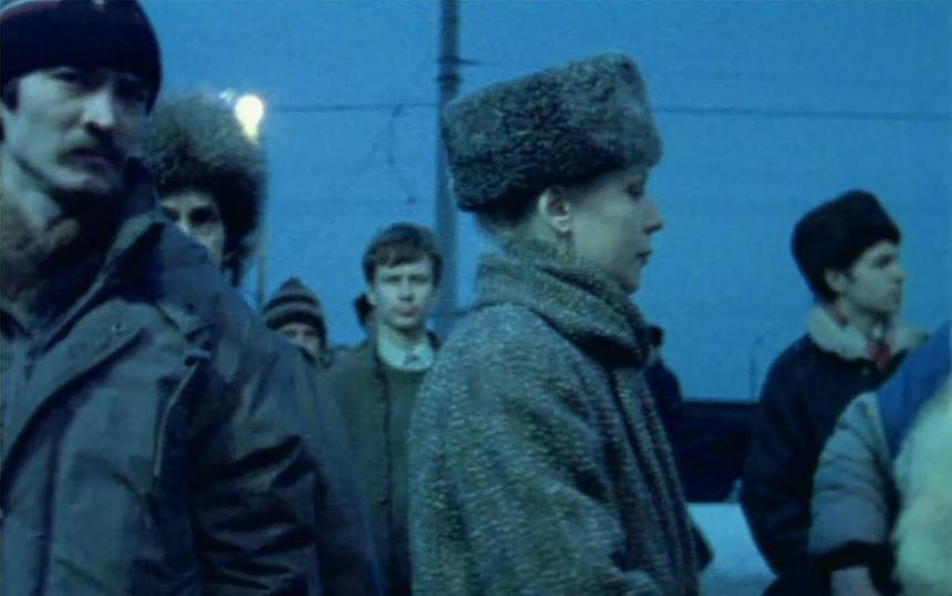 У Акерман тоже нет закадрового комментария, но есть длинные планы и статичная камера, позволяющая разглядеть каждую сцену во всех нюансах, примерить запечатленный опыт на себя, — это уже не коллаж, а масштабное полотно. Особое внимание постановщица уделяет очередям, остановкам и другим общественным пространствам, с помощью которых лучше всего получается передать экзистенциальное состояние ожидания. Позднее она вспоминала, что в этом путешествии каждый миг ощущала прикосновение истории и старалась зафиксировать потерявший все ориентиры мир, в котором каждый прожитый день кажется победой.