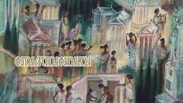 Сюжет начинается с легенды о Зевсе, который сверг титанов и стал сам править Олимпом. В честь этого он устроил состязания, на которых бог искусств Аполлон победил бога войны Ареса. Но потом рассказчик переходит к реальной истории возникновения Олимпиады. В греческой деревне каждые четыре года устраивали соревнования. На период их проведения прекращались все войны, а атлеты, забыв о раздорах, состязались в честной борьбе по установленным правилам. Историю сопровождают ироничные иллюстрации. Например, с юмором показывают, как на Олимпиаду спешат военные, учёные и даже статуи.